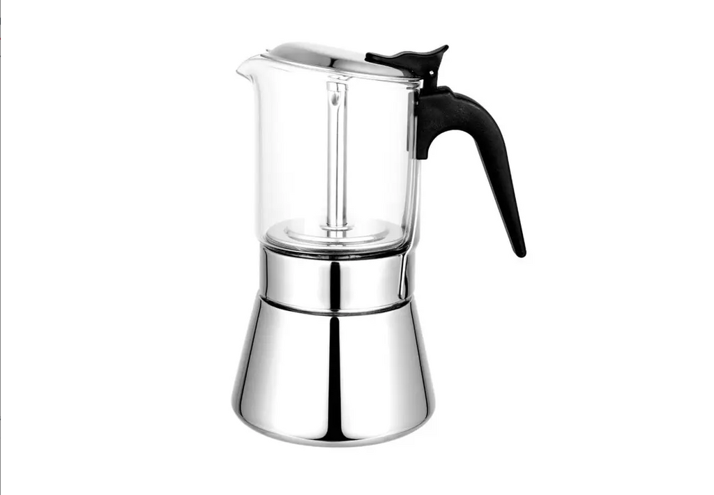 160ml capacity You can see without opening when the coffee is ready Stunning contemporary design to complement your home Stay cool handle and knob Suitable for use on all stove tops including induction Made from high-quality steel and borosilicate glass Hand wash preferred