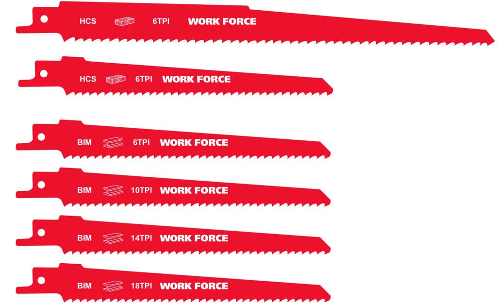 6 PIECE SET RECIPROCATING SAW BLADES MADE FROM HIGH CARBON STEEL WHICH IS IDEAL FOR WOOD PRUNING.Heavy Duty