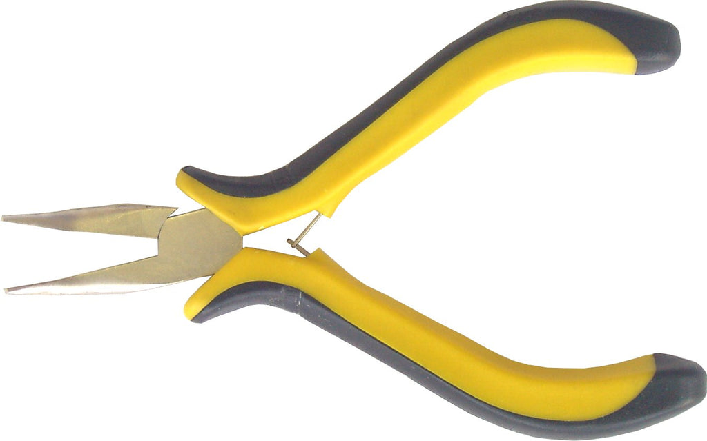 115mm Mini Bent Nose Plier. Precision machined jaws, chrome nickel plated finish resists rust, comfortable handle grips, spring handles assist with one handed operation