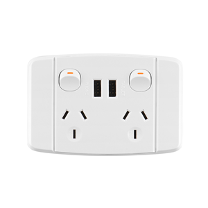 Dual outport USB charger, rated 5VDC, 3.4A total. Double switched outlet 250volt 10amp. Solid face plate. Aust & NZ standards approved.
