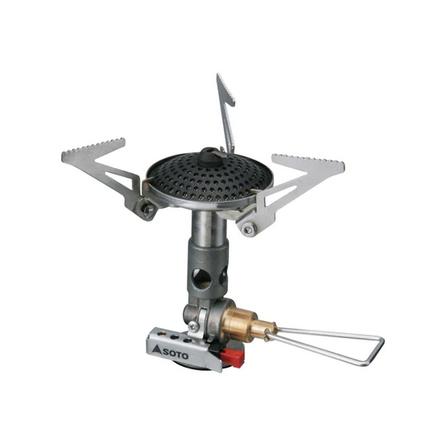 SOTO’s original micro regulator stove maintains a consistent output in cold weather. Proprietary "stealth lgniter" installed. Invisible part is installed inside the burner post and head for increased simplicity and improved ignition. The system also protects the igniter. "Hyper surface Burner Head" efficiently heats pan. Excellent for cooking. Case Included.