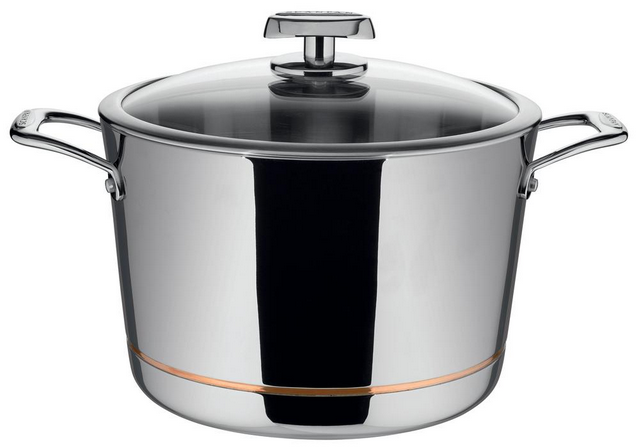 • Tempered glass lid with steel rim and steam vent lets you monitor your cooking without lifting the lid