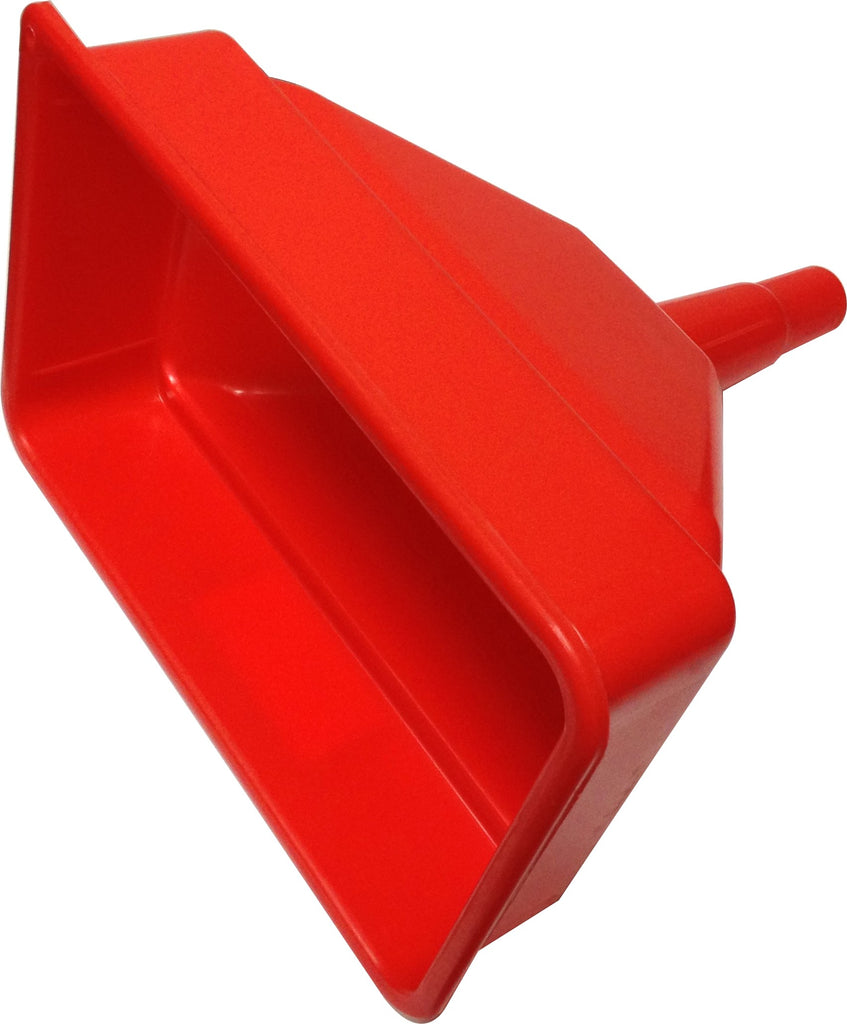 Jumbo Garage Funnel. 260 x 170mm large filling area to accommodate up-ended containers. Supplied with filter & tapered spout with venting ribs & hanging hole