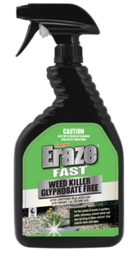 HERBICIDE - ERAZE FAST WEED KILLER - GLYPHOSATE FREE - 750mls