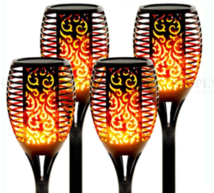 LIGHT - SOLAR PATH FLAME LIGHT - BLACK PLASTIC - 4 PKT