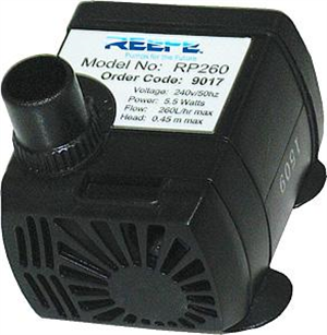 Feature and Pond Pump 260 L/hr, 0.45m max head 5Mtr cable length 240 volt 2 Year Warranty Includes flow controlEconomical Quiet Running Suitable for use in Aquariums, Fountains, Ponds, Table and Wall Fountains, Hydroponics.