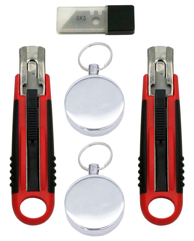 KNIFE & LANYARD - 2 PIECE SAFETY KNIFE & RETRACTABLE LANYARD - 4 SPARE BLADES