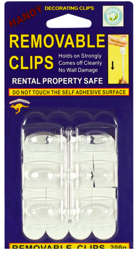 CLEAR LARGE CLIP HOOKS - 200gms - 6 PACK - REMOVABLE - HANDY