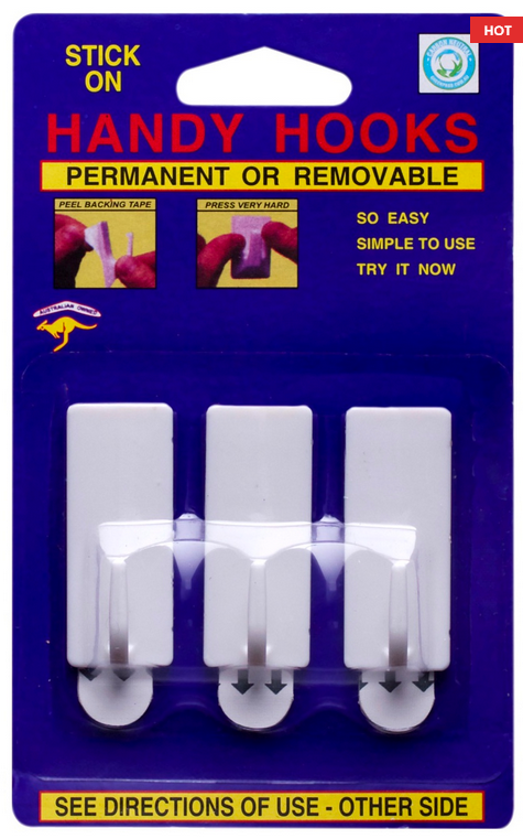 LONG KEY HOOKS - 3 PACK - 300gms - PERMANENT OR REMOVABLE - HANDY