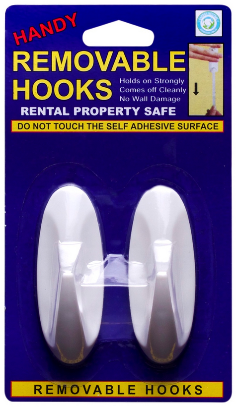 OVAL HOOKS - 1.5kg - 2 PACK - REMOVABLE - HANDY