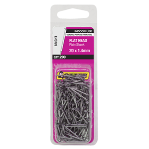 NAILS - FLAT HEAD BRIGHT - 20 x 1.4mm - PACK of 200
