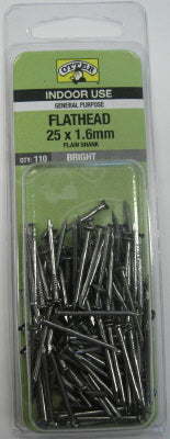 NAILS - FLAT HEAD BRIGHT - 25 x 1.6mm - PACK of 110