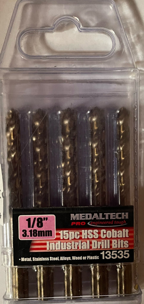 COBALT DRILL BIT SET - INDUSTRIAL STRENGTH - 1/8"/ 3.18mm - 15 PIECE PACK