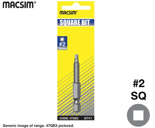 DRIVER BIT - SQUARE DRIVE - 2 x 100mm - 1 PACK - 1/4" HEXAGONAL SHANK