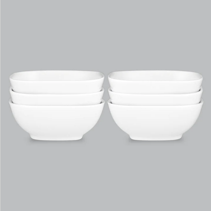 SQUARE BOWL SET - 6 PIECE - 10CM WHITE NEW BONE CHINA - WILKIE BROS