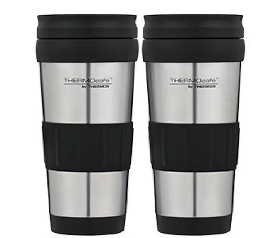 THERMOS - 420ml - 2 PACK - THERMOCAFE TRAVELLER TUMBLERS - STAINLESS STEEL