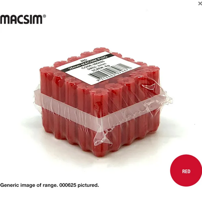 WALL PLUGS - RED - 6mm x 25mm - Pk25