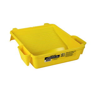 Sturdy plastic construction paint tray with footrest to stop tray sliding away whilst loading paint roller.2 x brush holders on side of tray.