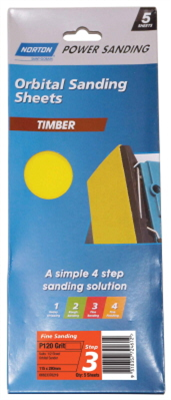SANDING SHEET - ORBITAL - TIMBER - 115 X 280mm - PACK OF 5 - FINE - P120