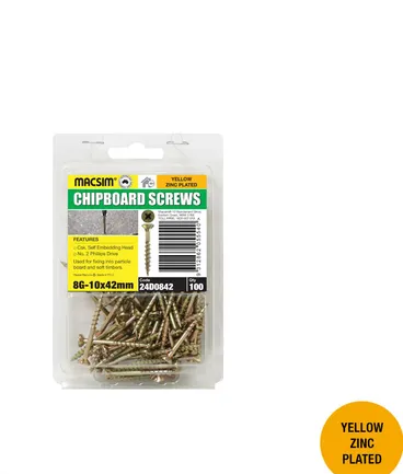 CHIPBOARD SCREWS - YELLOW ZINC PLATED - CSK SELF EMBEDDING HEAD - 8 X 42mm PKT 100